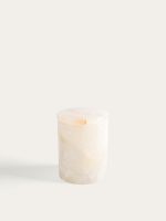 این نگهدارنده شمع با طراحی زیبا، ظرافت معاصر را با روکش آلباستر صیقلی خود تجسم میدهد. سطح نرم و شفاف آن درخشش گرمی را ساطع می کند و آن را به یک قطعه تزئینی بدیع برای دکوراسیون داخلی خانه های مدرن تبدیل می کند.