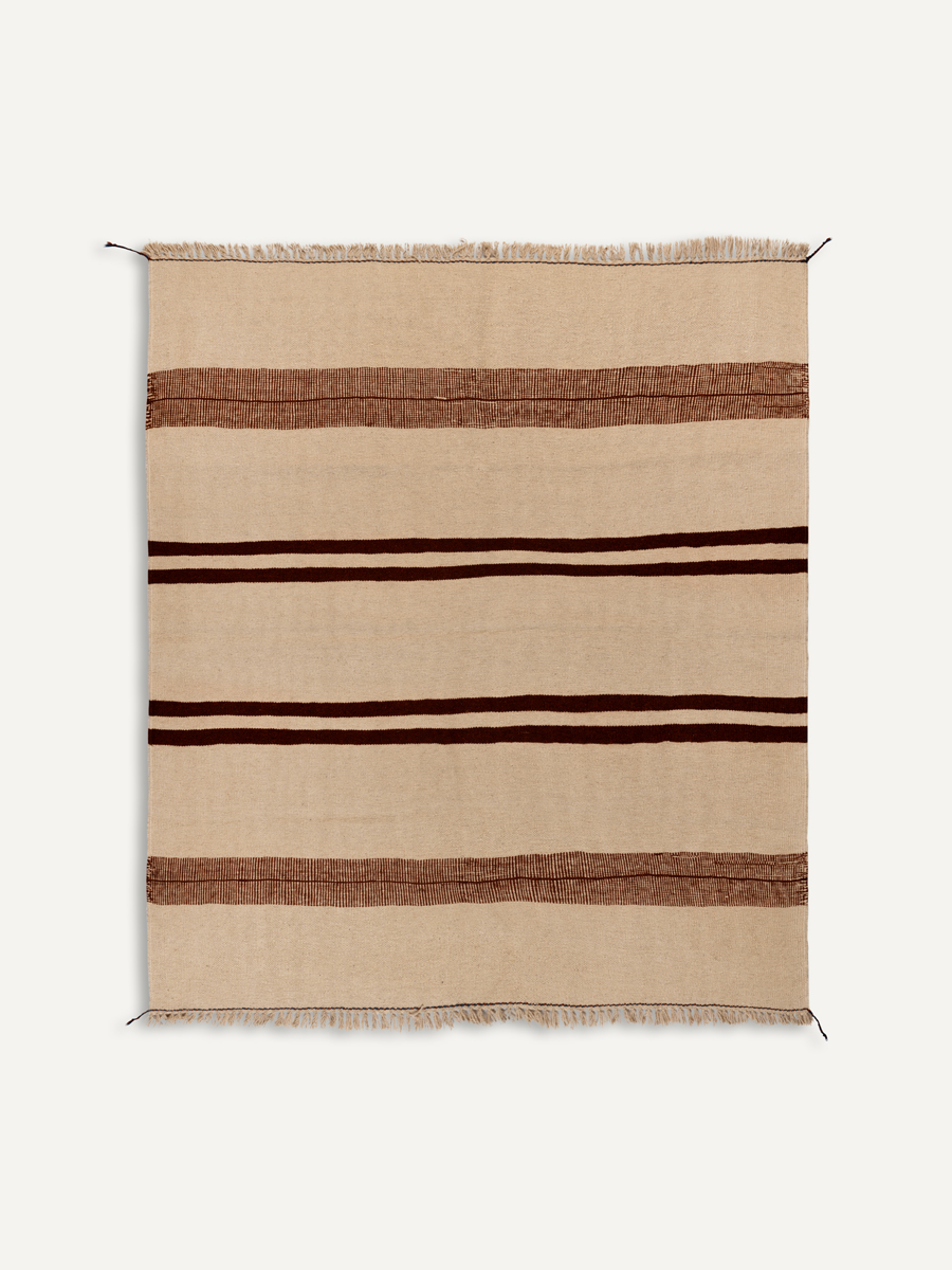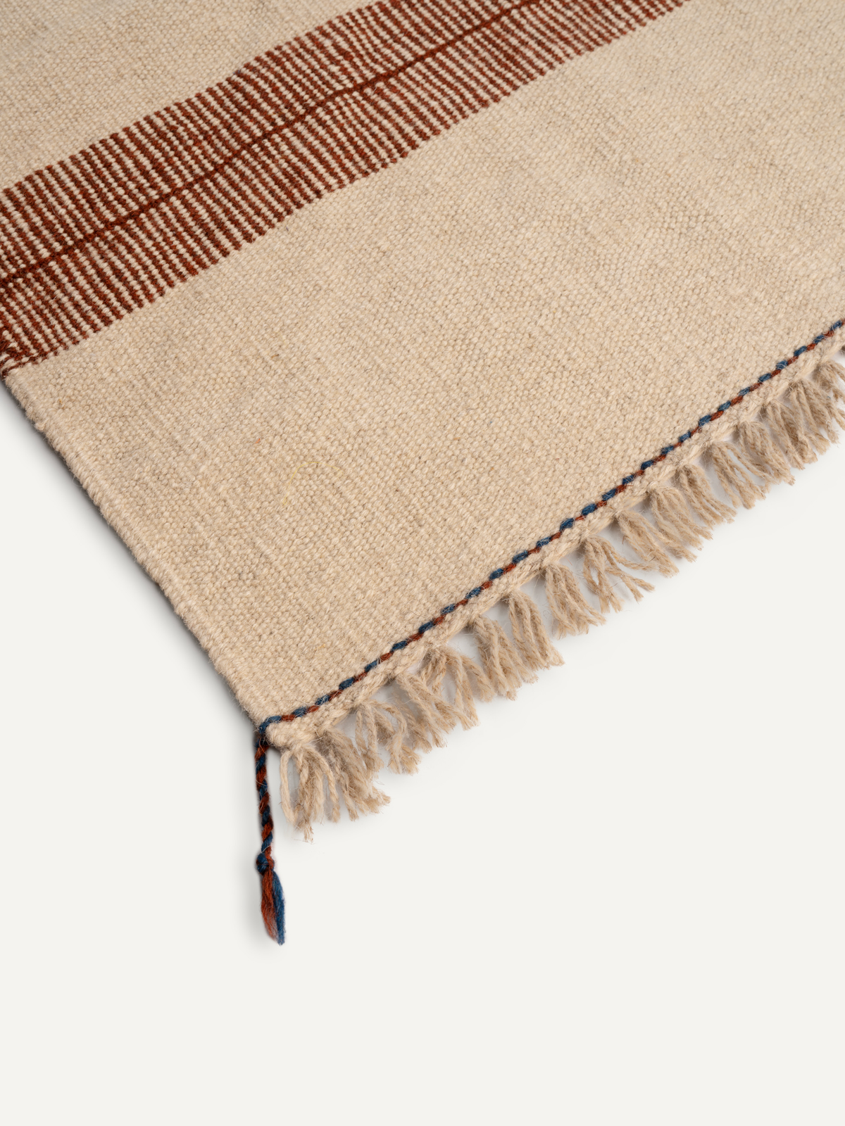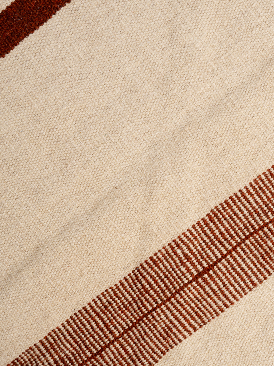 گلیم فیونا دارای زمینه ای ساده و راه راه های رنگی بزرگ است که به طور نامنظم چیده شده اند. برخی از خطوط پر از رنگ هستند، در حالی که برخی دیگر خالی می مانند و یک لمس بصری مدرن را اضافه می کنند.